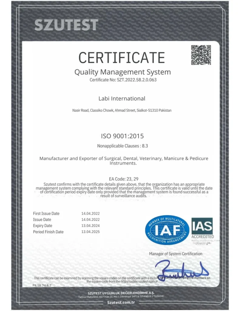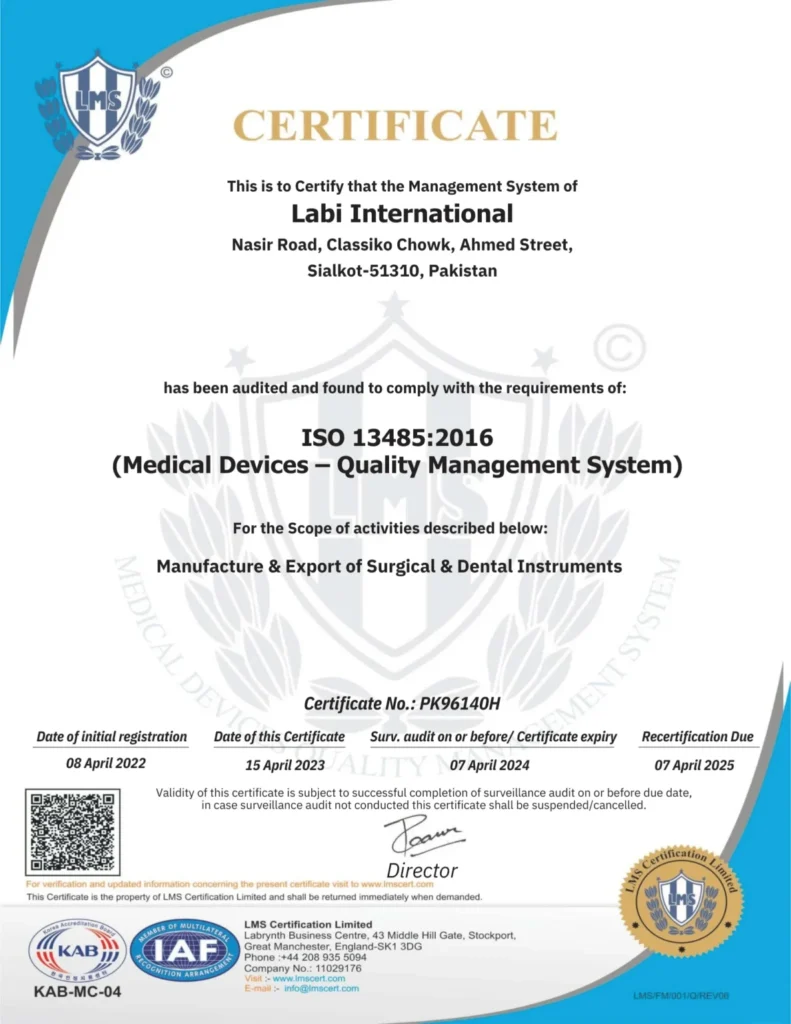 Labi International stands out as a trusted manufacturer of dental and surgical instruments by combining decades of craftsmanship with modern innovation and uncompromising quality standards. With over 30 years of industry expertise rooted in a century-old heritage, every instrument is manufactured using premium German and Japanese steel and produced under ISO 13485 and ISO 9001:2015 certified processes.
